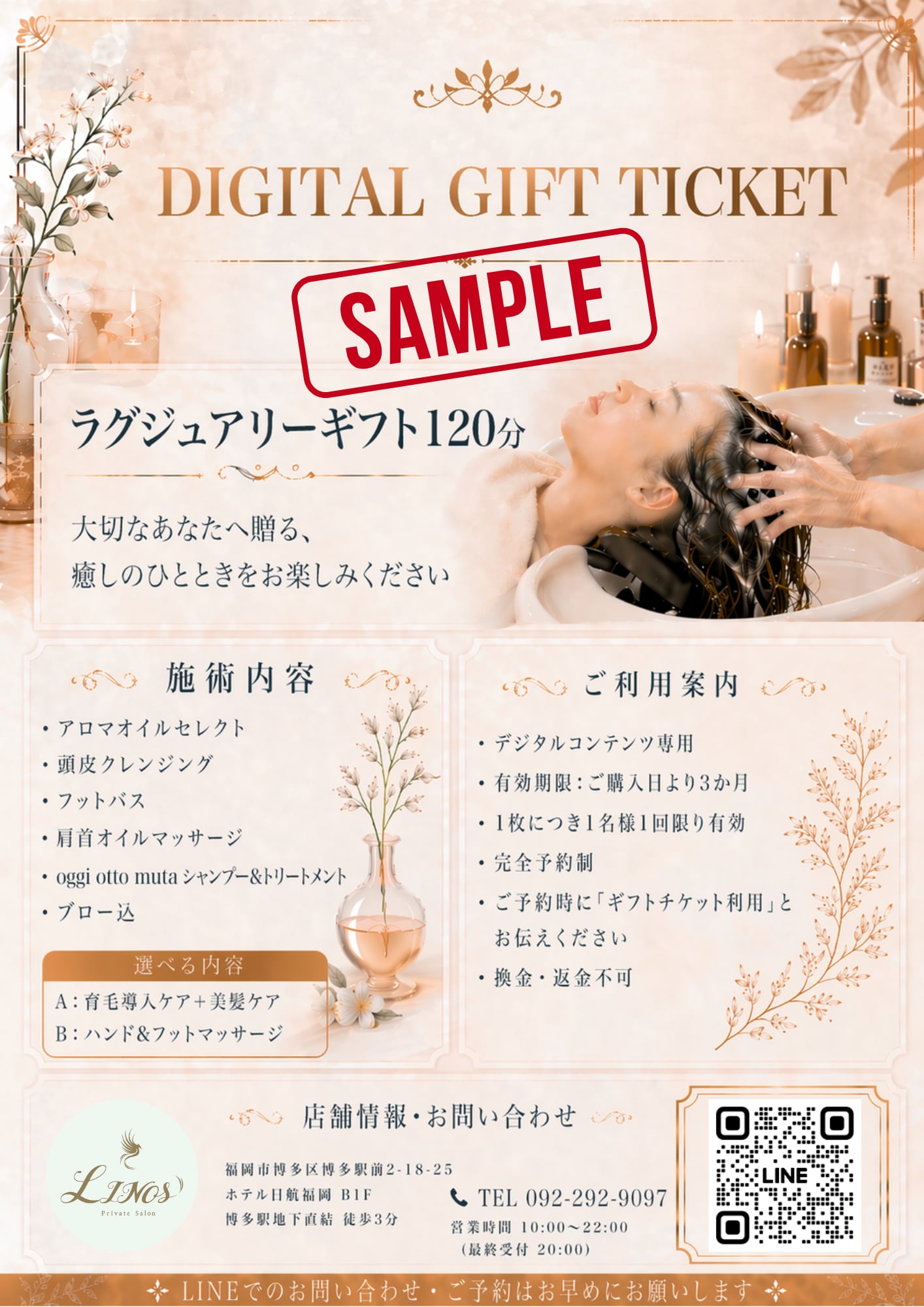 母の日の贈り物に…LINOS デジタルギフトチケット|ラグジュアリーギフト120分